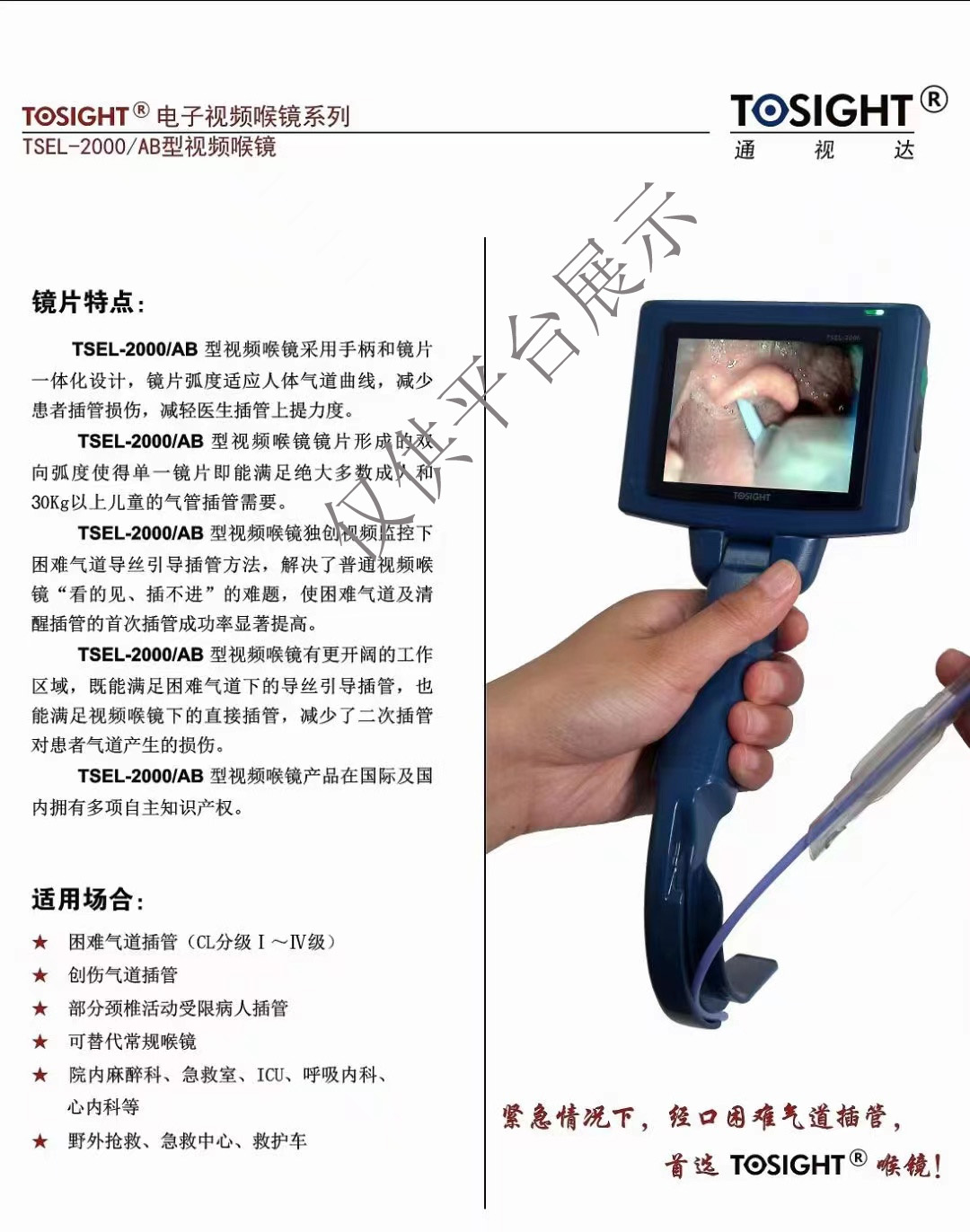 | 產(chǎn)品名稱 : | 通視達(dá)便攜式電子視頻喉鏡 TSEL-2000 |