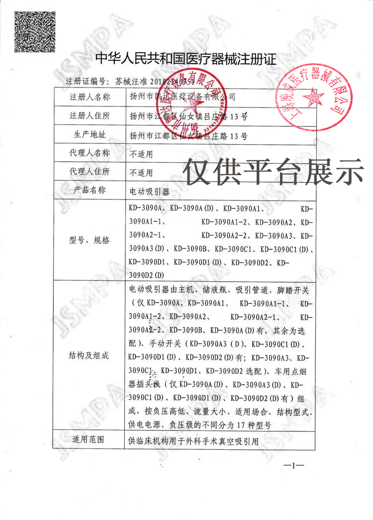 | 產(chǎn)品名稱 : | 凱達手提式電動吸引器KD-3090C1 |