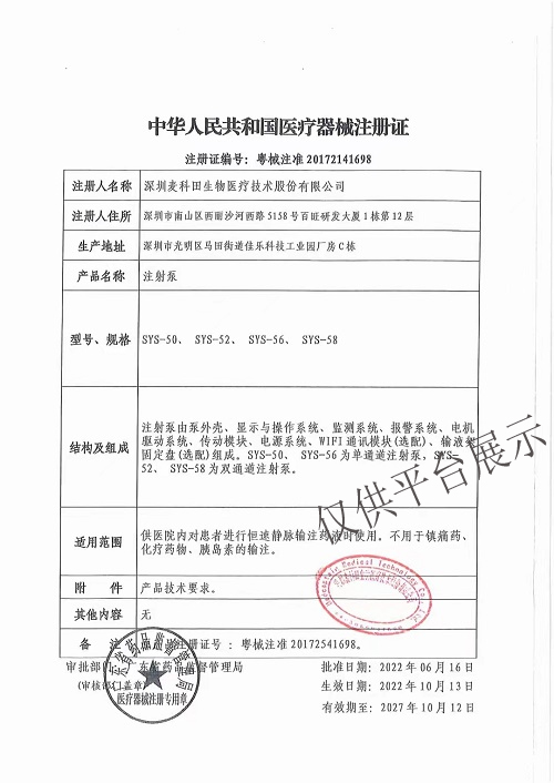 1、▲自動識別注射器:規(guī)格為5ml、10ml、20 ml、30 ml、50 ml或60 ml所有符合標(biāo)準(zhǔn)的注射器。
