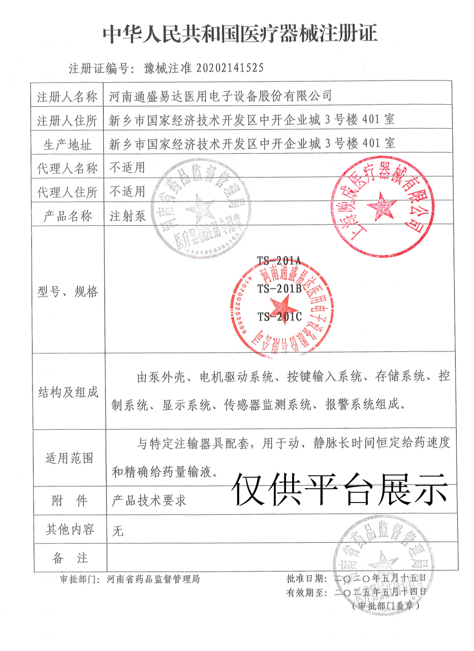 醫(yī)械網(wǎng)是一家提供通盛易達(dá) TS-201A單通道微量注射泵價(jià)格、參數(shù)介紹等信息的展示平臺(tái),為您提供優(yōu)質(zhì)的通盛易達(dá) TS-201A單通道微量注射泵產(chǎn)品,上海晚成醫(yī)療器械有限公司專注于各類醫(yī)療器械批發(fā)及零售,聯(lián)系電話:400-006-1850。